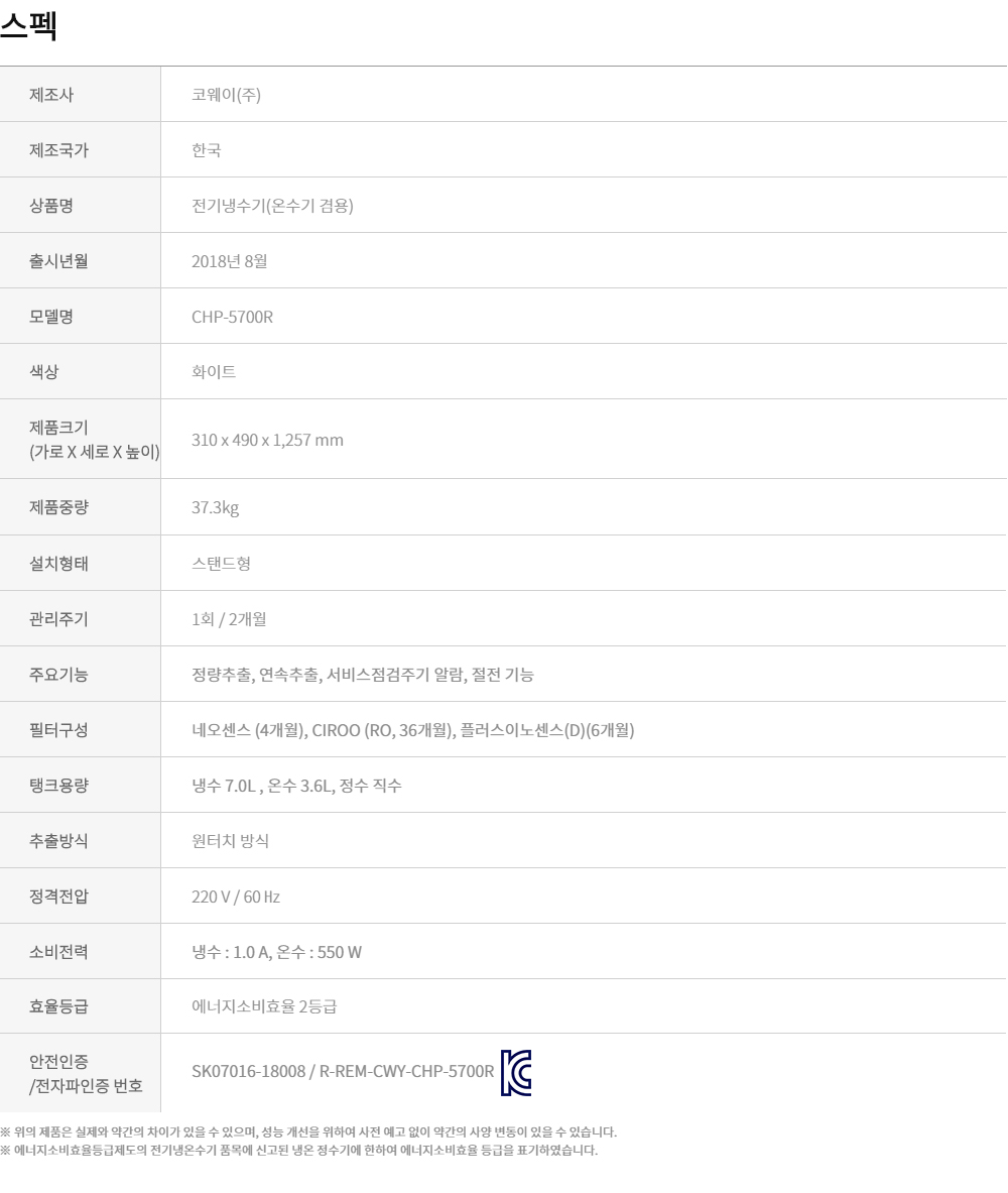 [코웨이] 아이콘 스탠드 냉온정수기