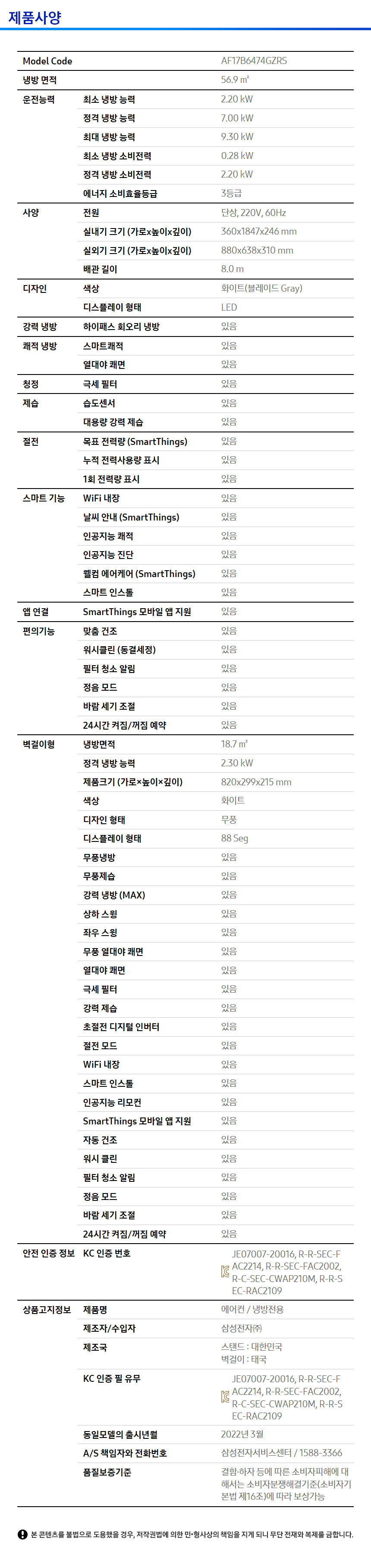 [삼성] 비스포크 무풍에어컨 클래식 17평+6평 (화이트/베이지)