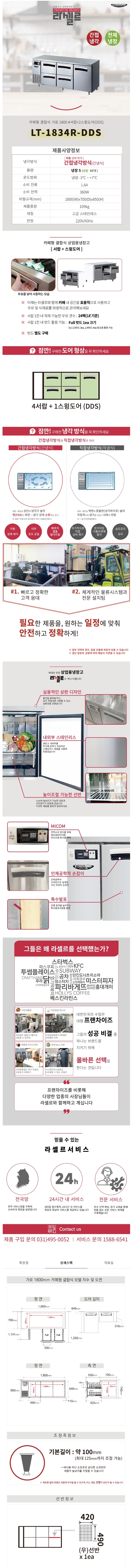• [라셀르] 간냉식 올스텐 업소용 테이블형 냉장고 497L 5도어 가로 1800 2서랍(좌)+2서랍(중)+스윙도어(우) 자동성에제거 LT-1834R-DDS