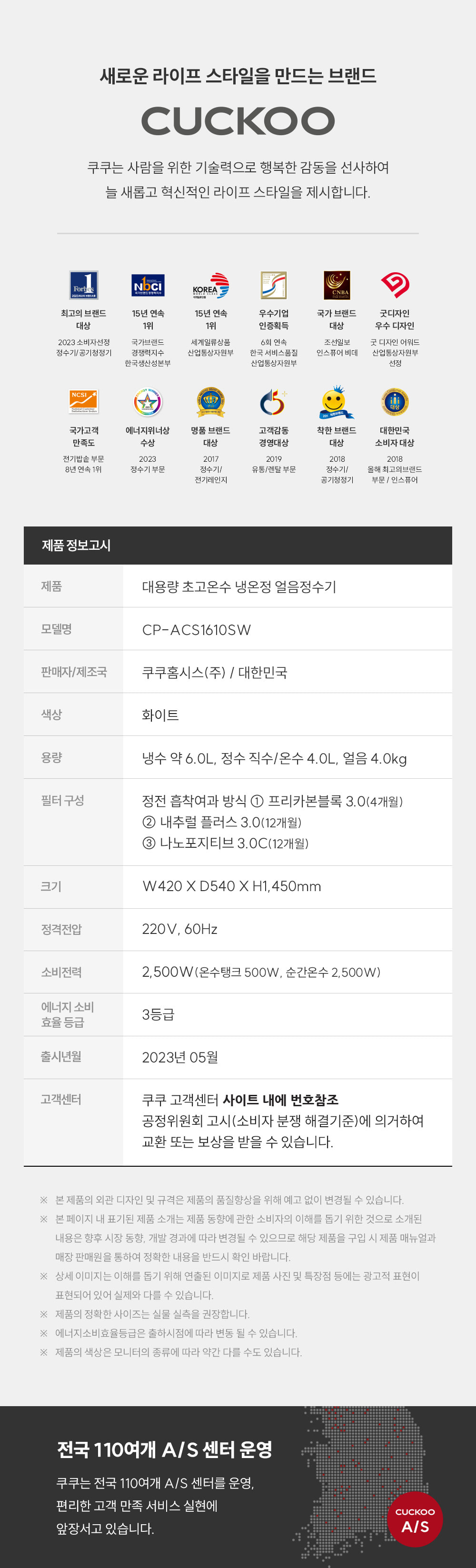 [쿠쿠] 끓인물 100도 제로백 얼음냉온정수기 하프형