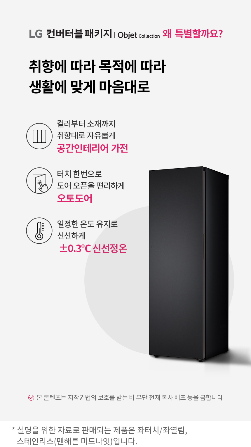 • [LG] 컨버터블오브제컬렉션1도어김치냉장고(좌열림)324L맨해튼미드나잇 Z322SM3CS