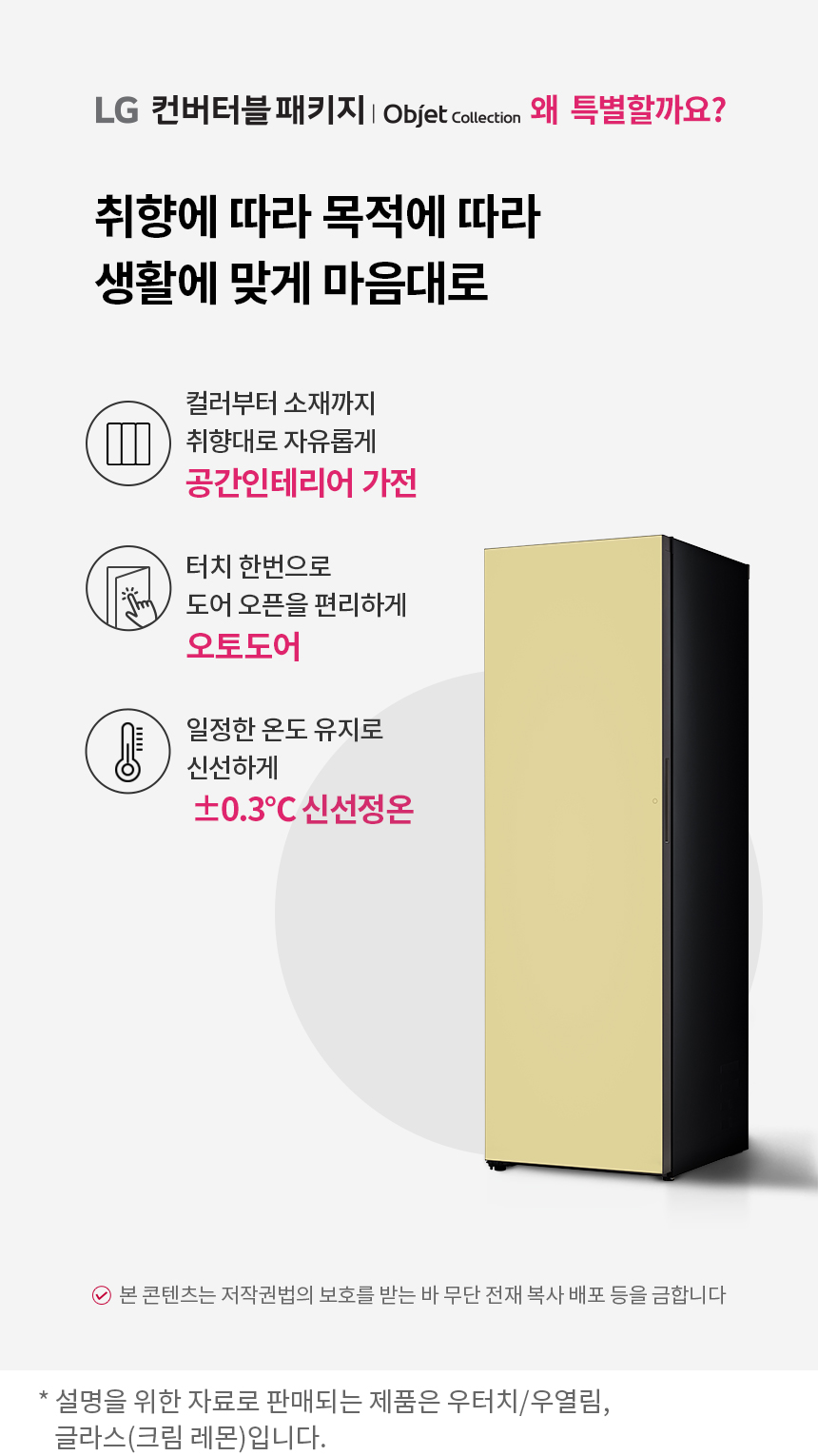 • [LG] 컨버터블오브제컬렉션1도어김치냉장고(우열림)324L크림레몬 Z322GN3CSK