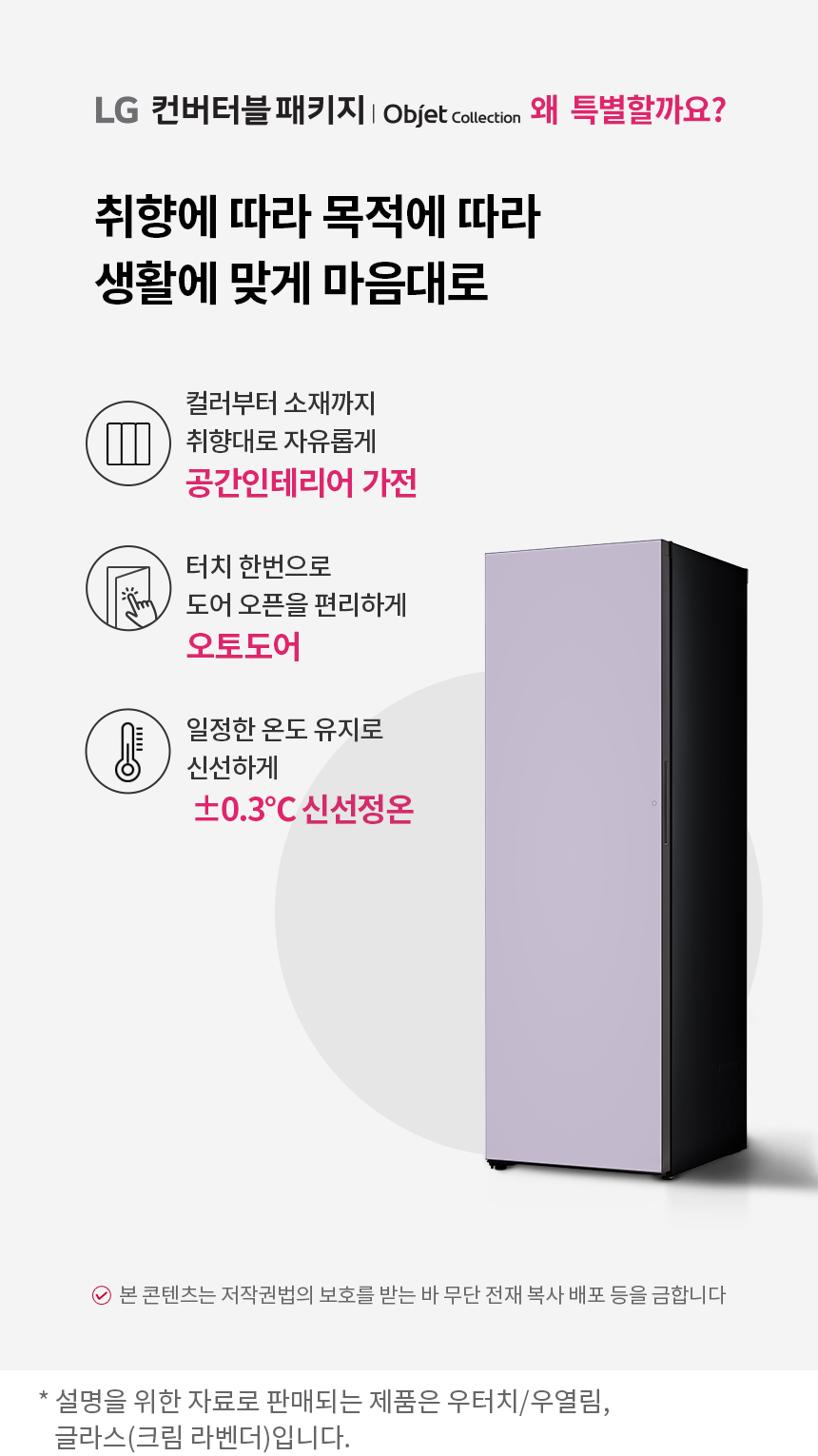 • [LG] 컨버터블오브제컬렉션1도어김치냉장고(우열림)324L크림라벤더 Z322GL3CSK